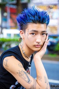 Blue Spiky Hair & Silver Jewelry