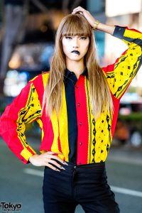 Vintage Striped Shirt & Black Lipstick in Harajuku