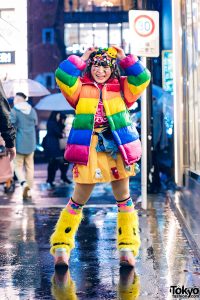 Puffer Jacket, Wrap Skirt & Smiley Face Leg Warmers