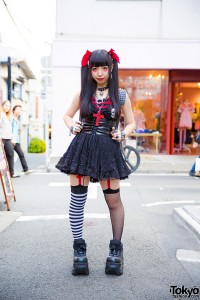 Goth punk girl with tutuHA corset, Body Line skirt, Algonquins top, Glad News backpack and Demonia platform creepers