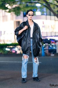 King Size Oversized Leather Jacket & Levi’s Ripped Jeans