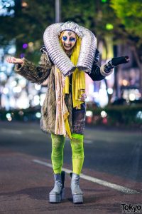Handmade Coat and Neon Green Mesh Tights