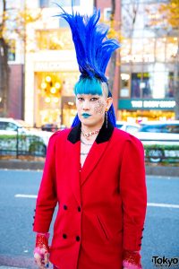 Tall Blue Mohawk Hairstyle & Vivienne Westwood Blazer