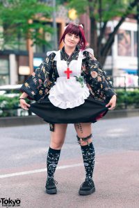 Printed Kimono, Ruffle Apron, Black Skirt & Ouija Print Socks