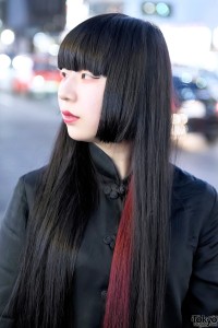 Black Japanese Bangs Hairstyle w/ Red Streak