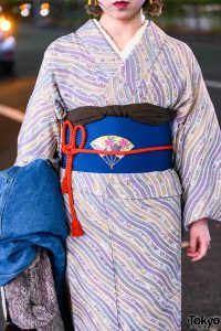 Dark Blue Obi Belt w/ Red Rope Accent