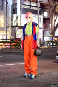 Masked Harajuku Girl in Layered Street Style Fashion
