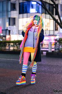 Orange Mini Skirt, WEGO Fishnet TIghts & Half Color Tights