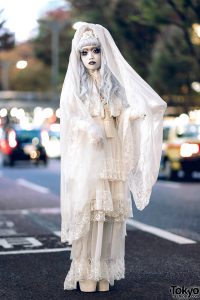 Japanese Shironuri Artist Minori on the Street in Harajuku