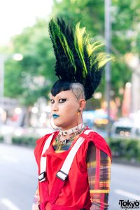 Tall Mohawk Hairstyle, Partially Shaved Hair & Head Tattoos in Harajuku